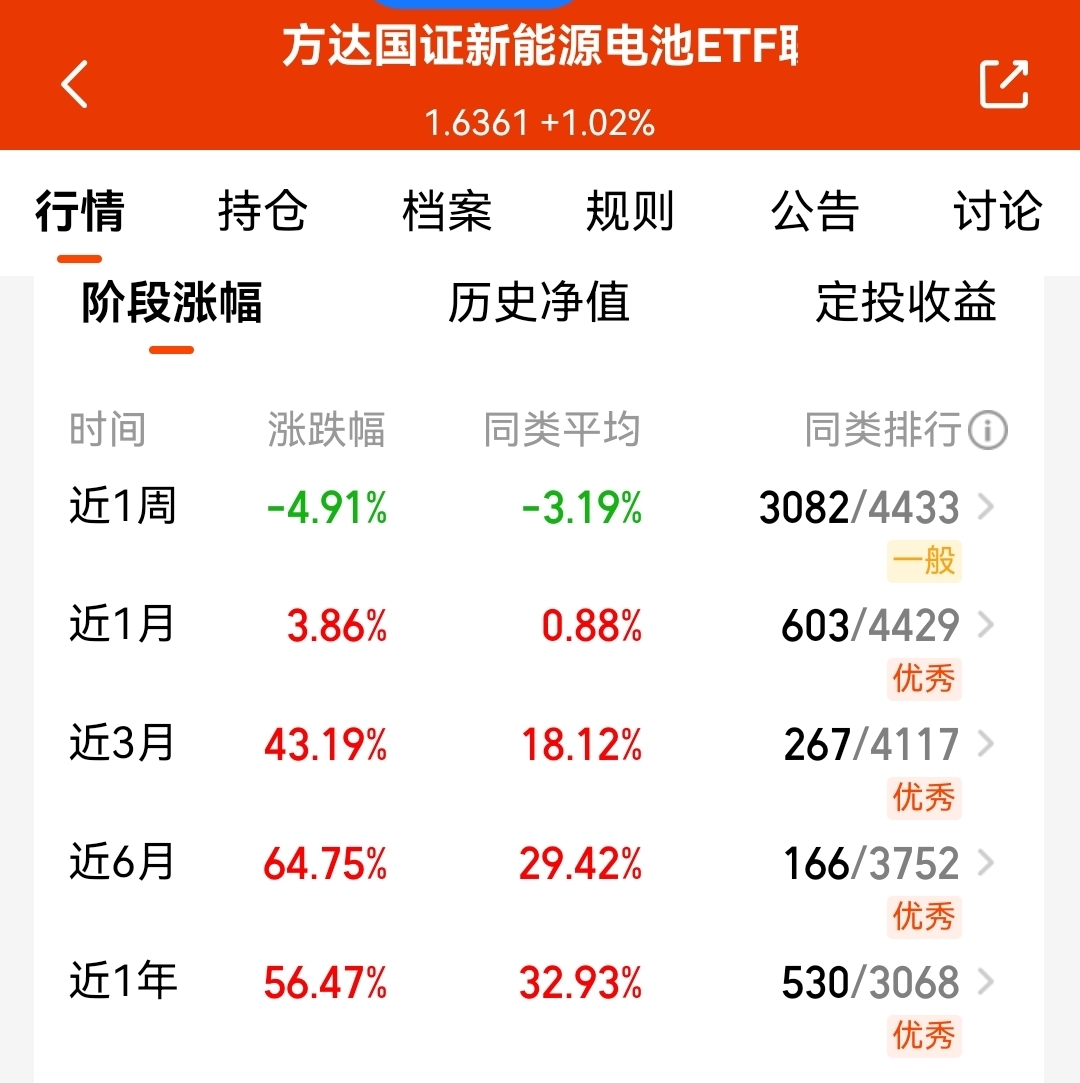 收益上,近3个月涨43.19%,近半年收益64.75%,跑赢大多数板块,而且新能源电池里储能电池占比高于其他电池指数,储能电池四季度迎来技术+需求共振,我觉得行情依然有机会反转,我先提前布局了!