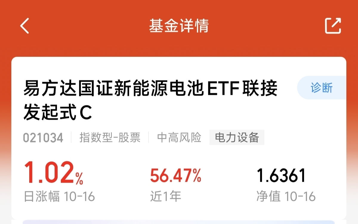 今天市场调整比较大。不过对于新能源,我还是看好,目前固态电池已经取得全面突破。而且新能源车的渗透率持续攀升。电池加速出海。未来的产业成长空间大。所以我今天开始布局$易方达国证新能源电池ETF联接发起式C$ 这是聚焦电池产业链的指数基金。昨天又上涨1.02%。指数中固态电池含比更高。最近的表现也是持续优于其他电池指数基金。而且整体表现做到涨多跌少。我顺势抄一波底。