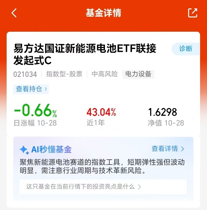 $易方达国证新能源电池ETF联接发起式C(OTCFUND|021034)$跟踪新能源电池指数,覆盖储能电池相关核心标的,契合政策与产业方向,在需求与政策共振下,后市成长空间仍不小。#A股突破4000点!下个目标位在哪?#