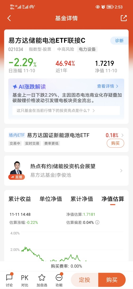 这个方向,我持续关注$易方达储能电池ETF联接C$ ,这支基金是易方达国证新能源电池ETF(159566)的场外ETF联接基金。该场内ETF近1年涨55.26%,近6月涨71.41%,近3月涨51.70%,近1月涨5.84%,近1周涨0.09%,表现非常不错,是目前全市场中唯一一只布局储能电池的产品,紧紧抓住了近期储能热点,我对它接下来的表现非常有信心。
