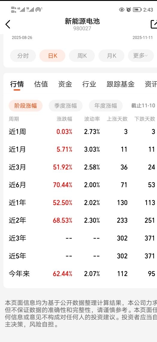 进入十一月以来,A股大盘一直在4000点上下来回震荡。大盘指数虽然没有怎么涨跌,但如果踏准了方向,这个月依然是能够收获不小的。从近期的资金流向来看,以储能为代表的整个新能源赛道表现非常强势。国证新能源电池指数(980027)近2年涨68.53%,近1年涨52.50%,近6月涨70.44%,近3月涨51.92%,近1月涨5.71%,近1周涨0.03%,表现非常优秀,尤其是成功穿越了A股十月十一月的科技回调行情。