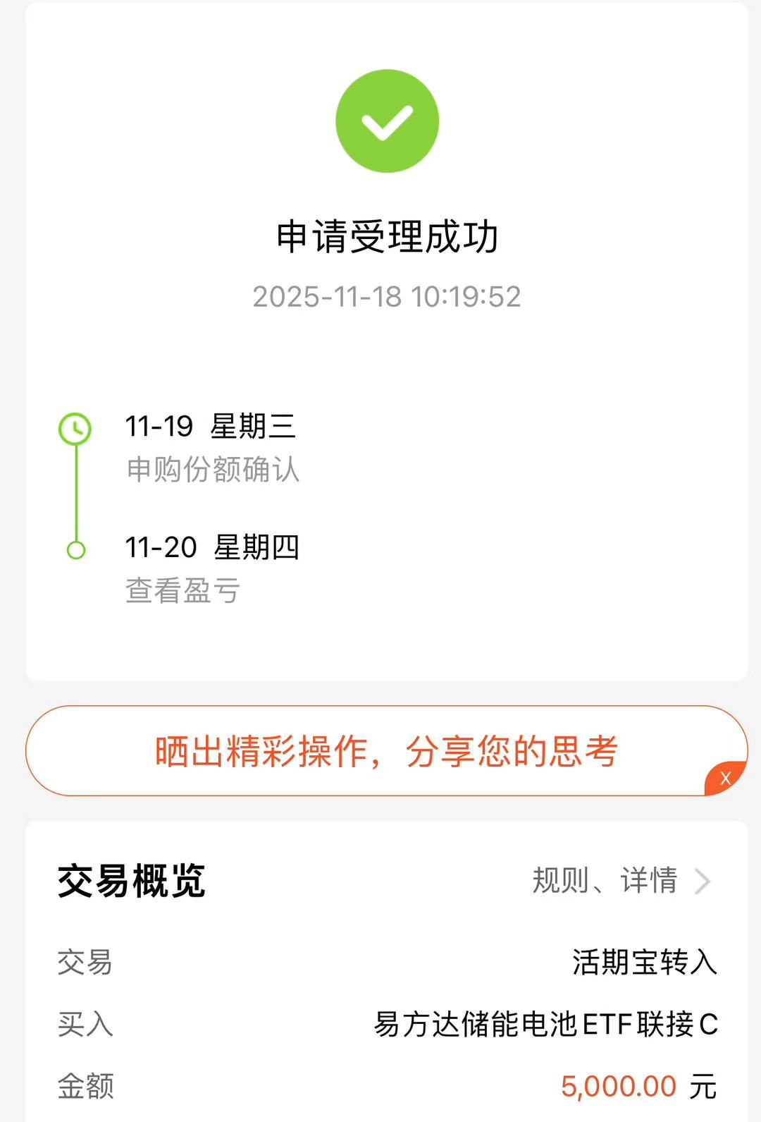 今天储能板块小幅震荡,但中长期逻辑反而更稳了:AI 算力扩张带来巨量用电需求,叠加风光发电占比提升,电网调节压力只会越来越大,储能作为“新型电力系统的稳定器”,景气度有望持续走高。我选择在回调时 上车5000 元,提前卡位。更重要的是,储能电池指数是全市场唯一主投储能板块的纯粹产品,想投储能,这就是最干净直接的标的。趁调整布局,刚刚好。