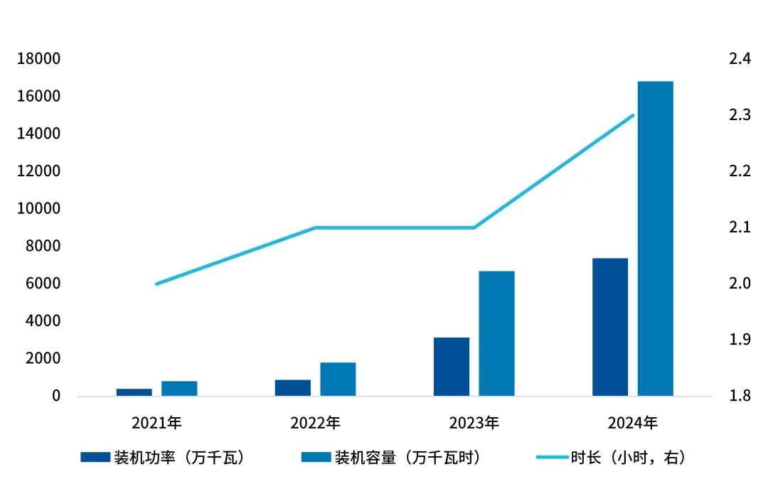 近年来,新型储能的装机规模保持较高增速,截至2024年底,中国新型储能装机规模已突破7376万千瓦/1.68亿千瓦时,装机功率和装机容量分别较2021年末增长了17倍和20倍。
