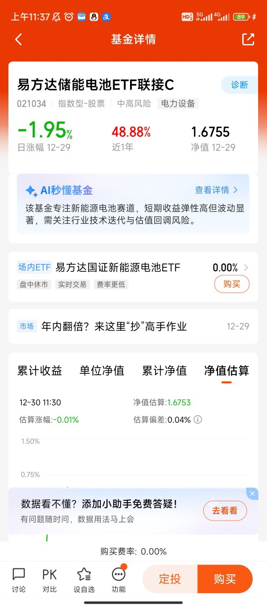 #我的年度投资操作# $易方达储能电池ETF联接C$