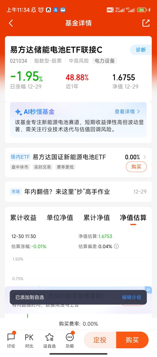 #我的年度投资操作# $易方达储能电池ETF联接C$