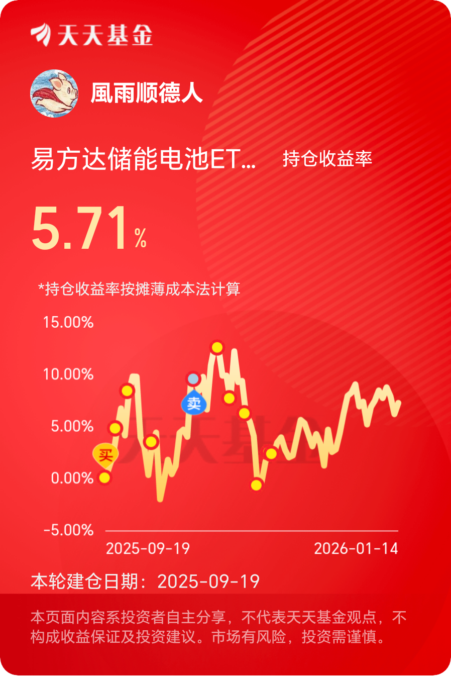 对于业绩驱动,我比较看好的是$易方达储能电池ETF联接C$ ,这个品种主要跟踪国证新能源电池指数,储能含量较高。近期美国AI发展出现严重的电力不足,储能需求非常大,国内也有类似的需求,可以预期2026年还是储能电池的高景气。巴菲特说过,只有潮水退去。才知道谁在裸泳,今天储能电池无惧市场走弱重新上涨并回到高点附近,说明资金是真看好这个方向,我认为在市场无序波动周期,谁的业绩过硬谁就能穿越,易方达储能电池ETF联接C或许就是其中一个潜力宝藏基。