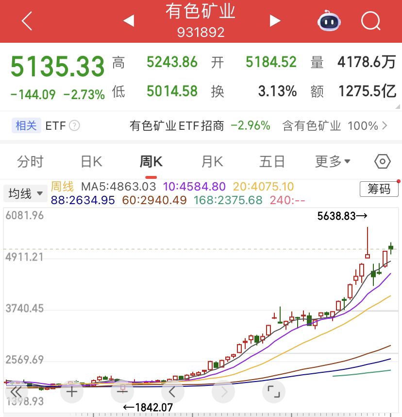 近一周海外贵金属持续上行,带动 A 股资源板块走强。有色金属行情并非短期炒作,更多受地缘风险与供需格局支撑,在供应偏紧的背景下,价格对供给变化反应敏感,确定性较强。我持有的$招商中证有色金属矿业主题ETF发起式联接C(OTCFUND|026478)$跟踪有色矿业近一年涨幅达150%,近期随指数有所回调,但板块核心逻辑没有改变。地缘局势持续带来避险需求,供需紧平衡状态未被打破,中长期看有色依然具备配置价值。