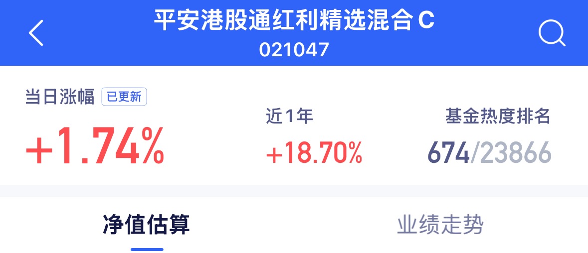 $平安港股通红利精选混合C$今天上涨了1.74%近一年上涨18.70%,优秀的哦