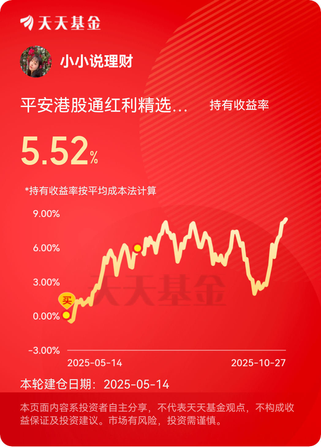 宝子们好呀,咱就是说,红利跟科技往往都是反着走的,结果没想到昨天俺的科技创新高的同时,持有的港股红利基——$平安港股通红利精选混合发起式C$ 也创新高!港股红利的最大的特点就是不仅抗跌,也能涨,一路爬坡稳稳的向上,是真的香~用来平衡仓位波动正正好好!