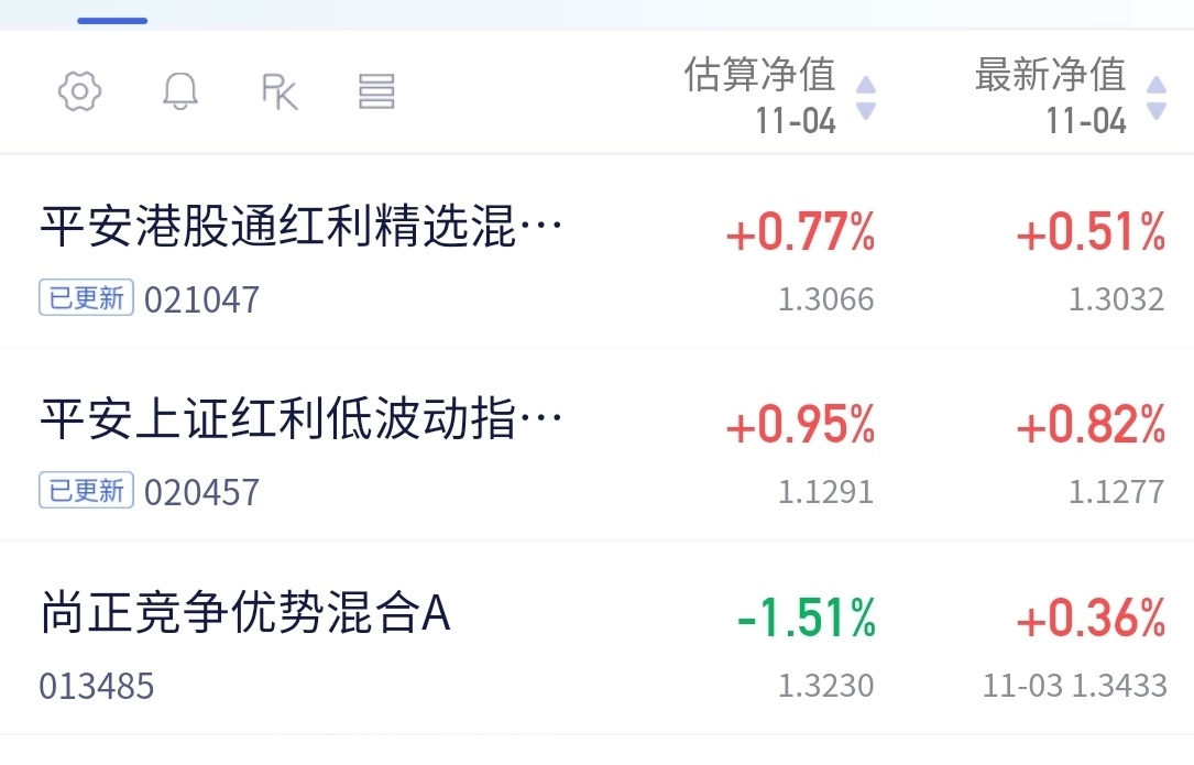 $平安港股通红利精选混合发起式C$ 今日涨0.51%,其优势在于港股高股息、估值洼地及稀缺资产,弹性大。$平安上证红利低波动指数C$ 今日涨0.82%优势在于红利叠加低波动双因子策略,防御性强,波动回撤小,更稳健。两者可互补配置。$尚正竞争优势混合发起A$ 也红了,不错。