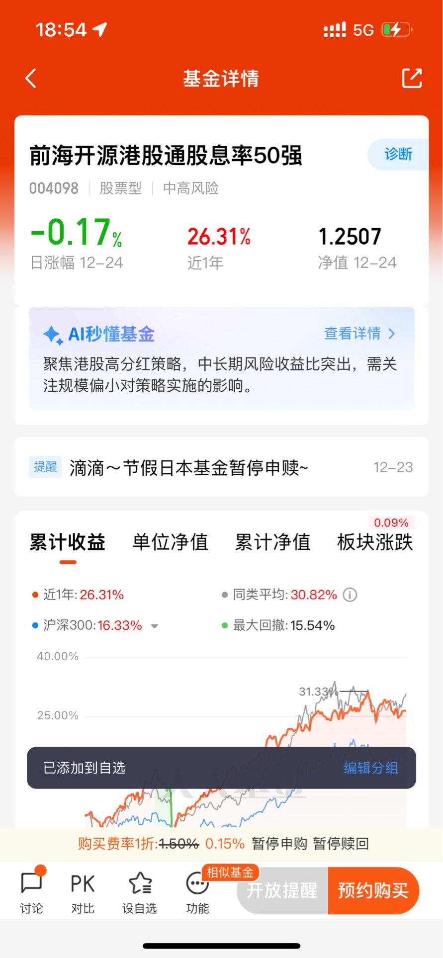 底仓配置我选港股红利。当前市场高位震荡,港股红利的估值更低、分红稳定、股息率高,今年以来南下资金也疯狂扫货港股红利,适合长期持有不操心。$前海开源港股通股息率50强$