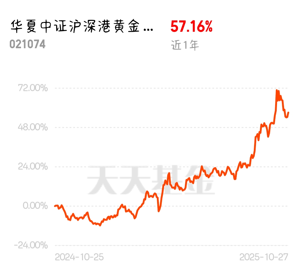 吸点便宜筹码吧,全球贸易冲突、去美元化等因素还在,金价还会涨的$华夏中证沪深港黄金产业股票ETF发起式联接A$