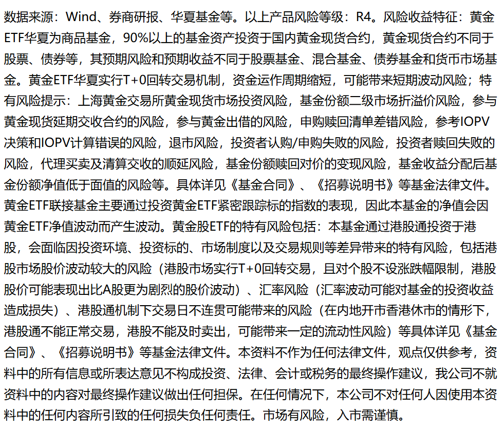 注:黄金ETF华夏的跟踪上海黄金交易所黄金现货实盘合约Au99.99价格,其2020-2024年完整会计年度业绩为:13.83%,-4.85%,9.84%,17%,28.42%,指数历史业绩不预示基金产品未来表现。