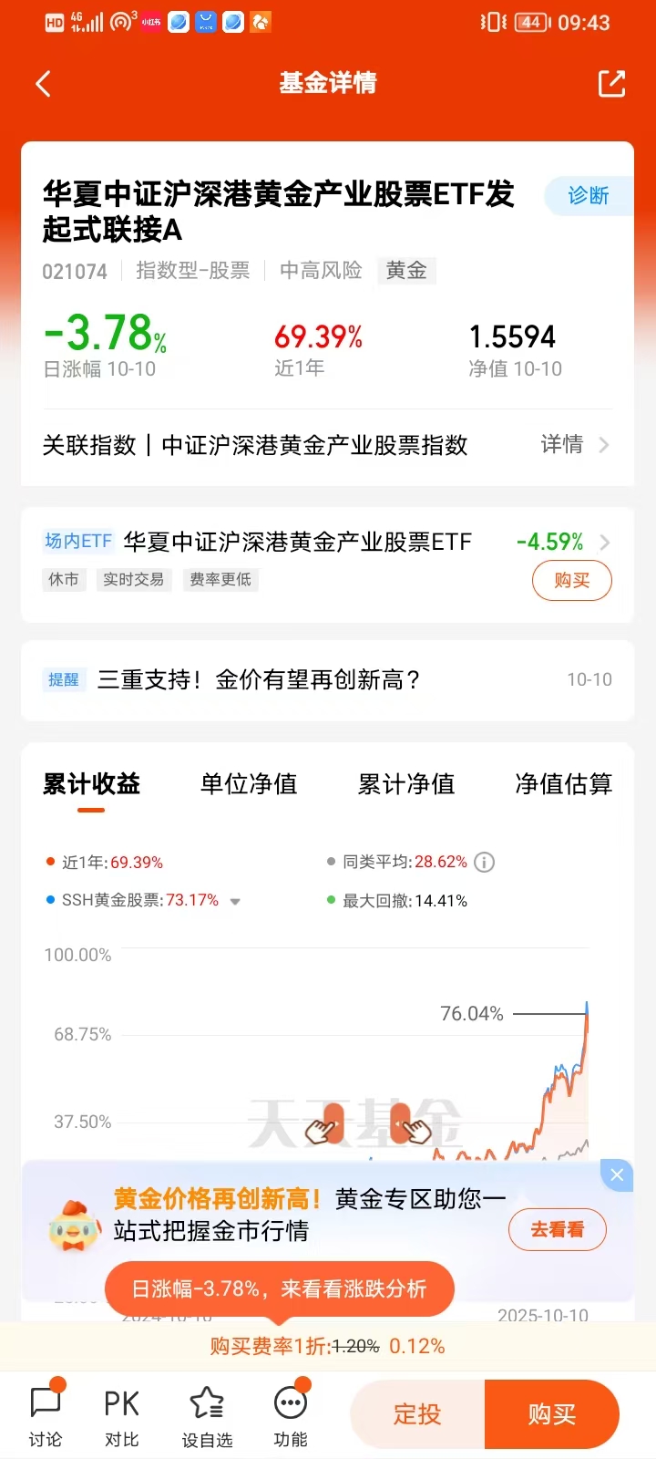 $华夏中证沪深港黄金产业股票ETF发起式联接A(OTCFUND|021074)$