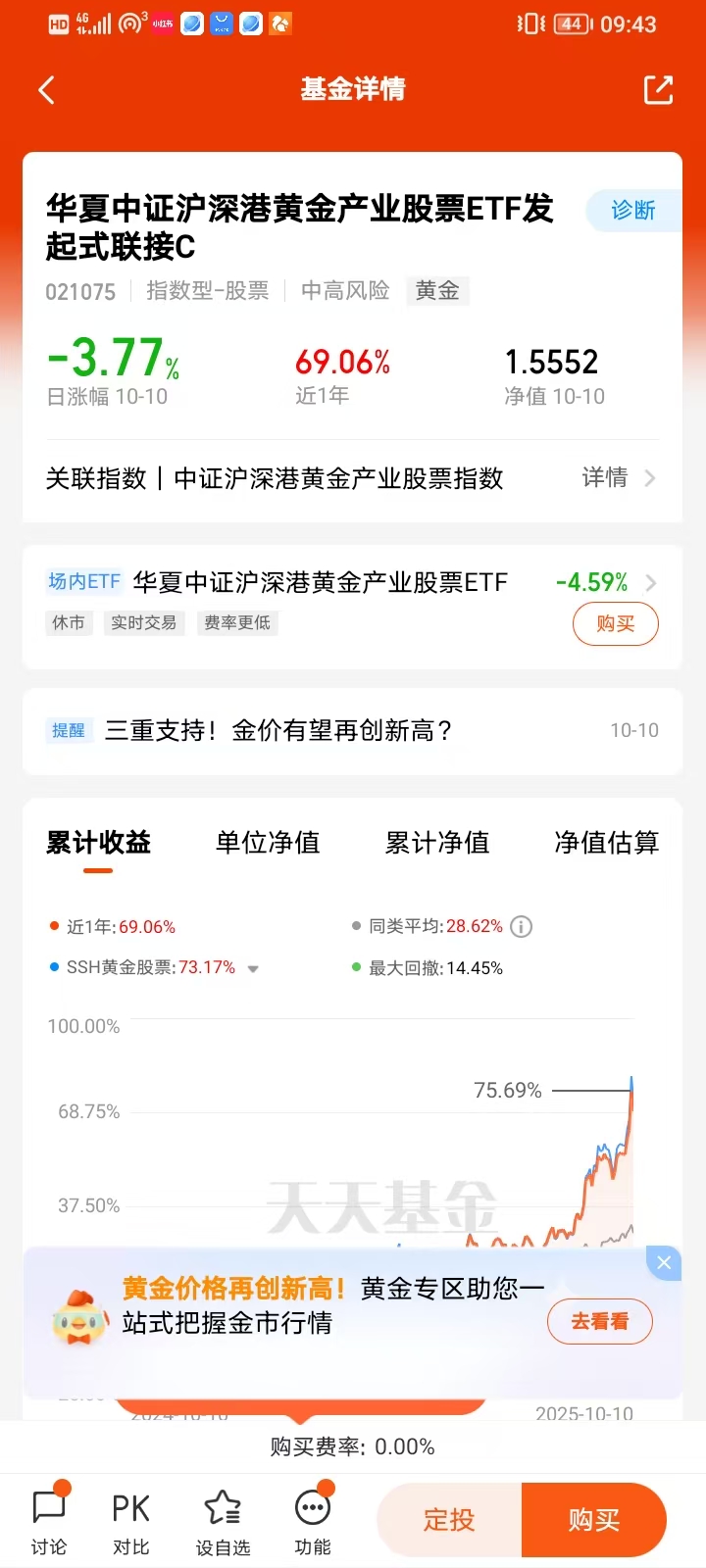$华夏中证沪深港黄金产业股票ETF发起式联接C(OTCFUND|021075)$