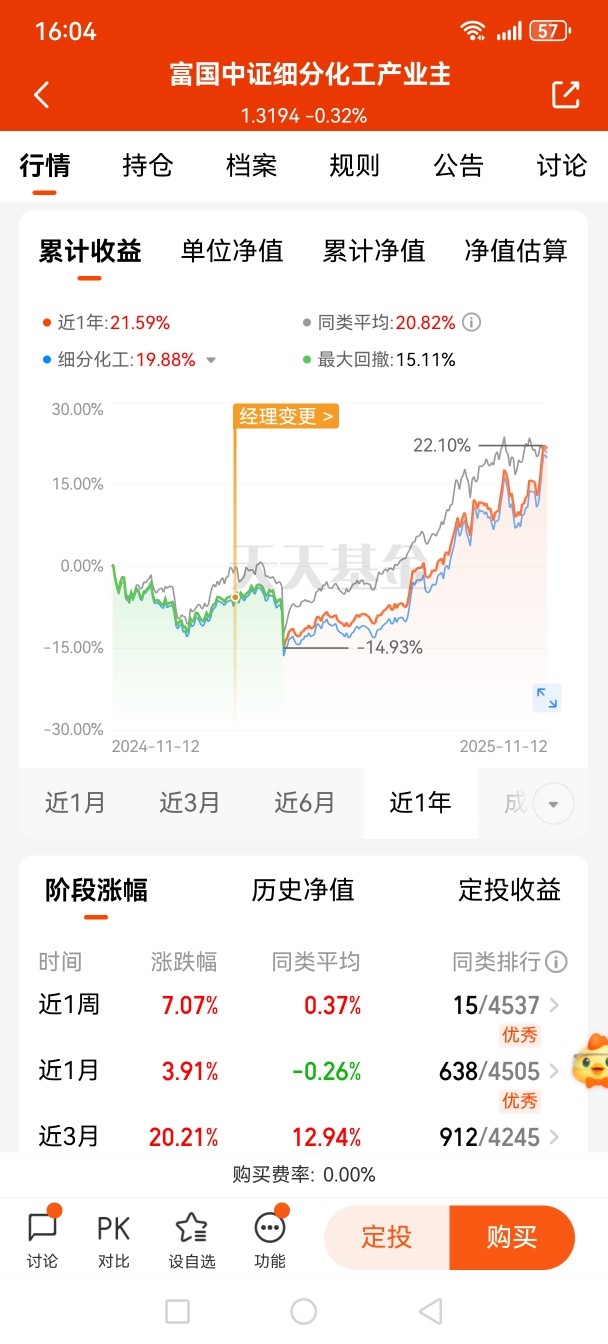 配了点富国中证细分化工产业主题ETF联接C,跟手里的黄金ETF搭配,一个稳守一个