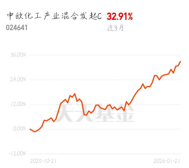 现在化工龙头企业优势凸显,行业集中度持续提升,盈利空间不断打开,周期反转势不可挡,顺周期大爆发!从上游有色发展到中游化工,持续延续高景气,化工产业近期涨幅稳健领先,中欧化工产业混合发起 C 近 3 月 32.91%$中欧化工产业混合发起C$