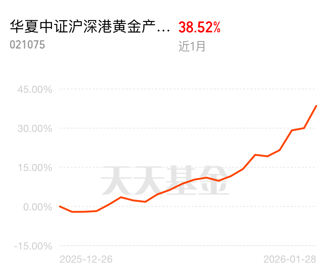 近 1 个月涨 38.52%,感觉买它就像抱了个金娃娃! $华夏中证沪深港黄金产业股票ETF发起式联接C$