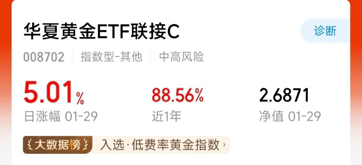 这只今天涨了2.52%,隔壁的黄金基涨了5.01%,持仓里的黄金股贼太能打,感觉
