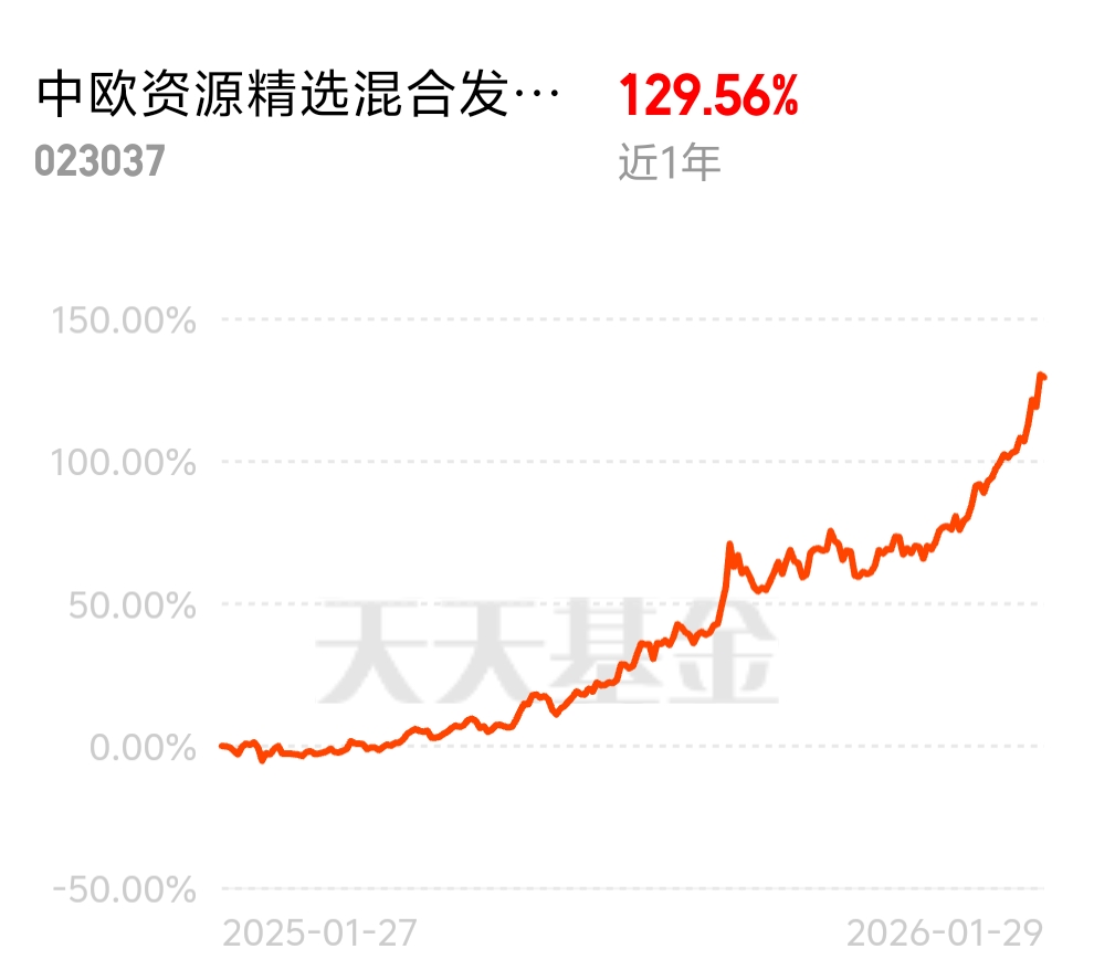 手握中欧资源精选混合发起 C 太香了,近 1 年收益直接冲到 129.56%,今日有色金属倒车接人赶紧跟,全球商品大周期下,铜铝碳酸锂黄金小金属五大品种全受益,供需和政策加持让景气度持续在线