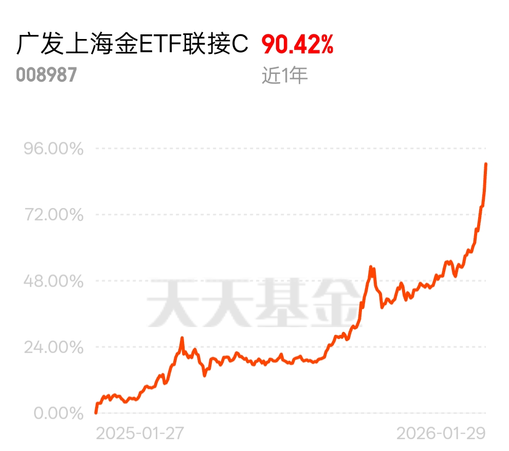 关税大棒下的通胀预期正在抬头,黄金作为对抗购买力缩水的利器,配置价值只会越来越高。今天金价虽然歇了歇,但广发上海金C的长期趋势依然向上。既然这种“硬资产”是应对未来不确定性的底牌,那咱们就别被一天的阴线吓跑,持仓看长远。$广发上海金ETF联接C$