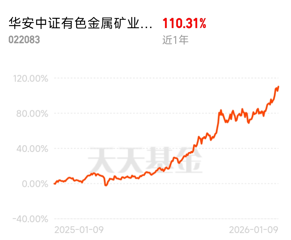 $华安中证有色金属矿业主题指数发起式A$ 近 1 年狂赚 110.31%,100% 聚焦有色金属,不掺杂项,闭眼冲不亏