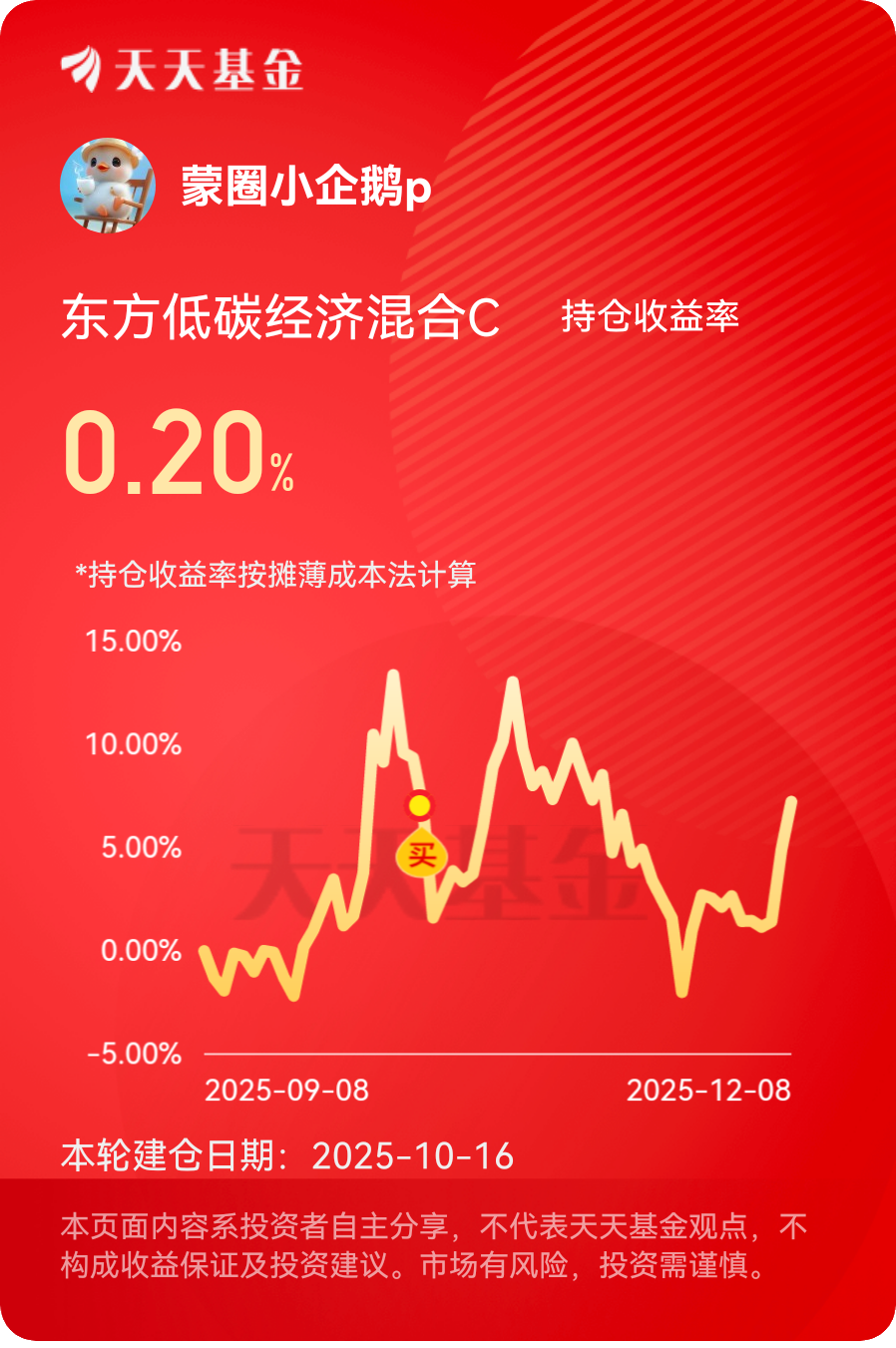 $东方低碳经济混合C$收盘打卡!不光大盘核聚变今天也微跌小面一碗,不过幅度不大,