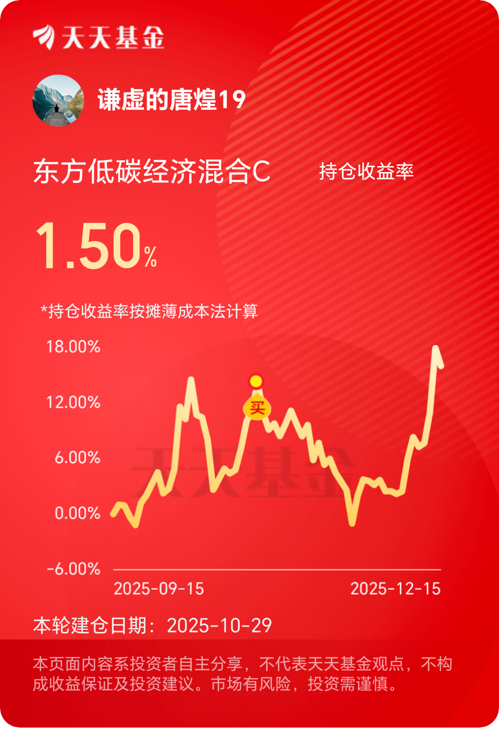 没必要担心,这个赛道不同于其它科技板块,我中长期看好它,最近也一直在定投,后面也会适当做T$东方低碳经济混合C$ #晒收益#