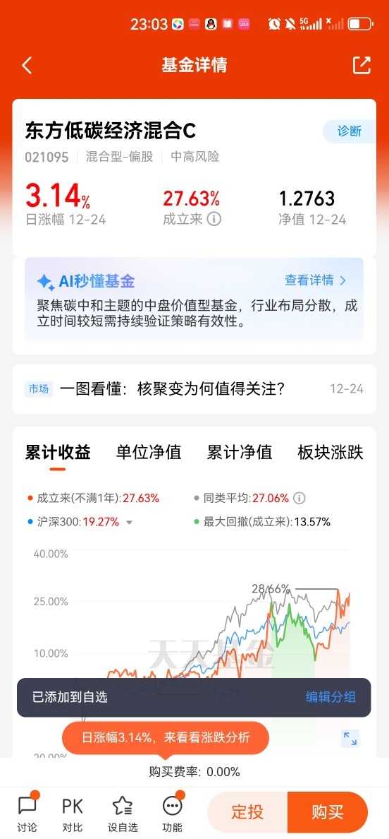 东方低碳经济混合C(25%):政策驱动型配置,享受估值修复与股息收益的双重馈赠。
