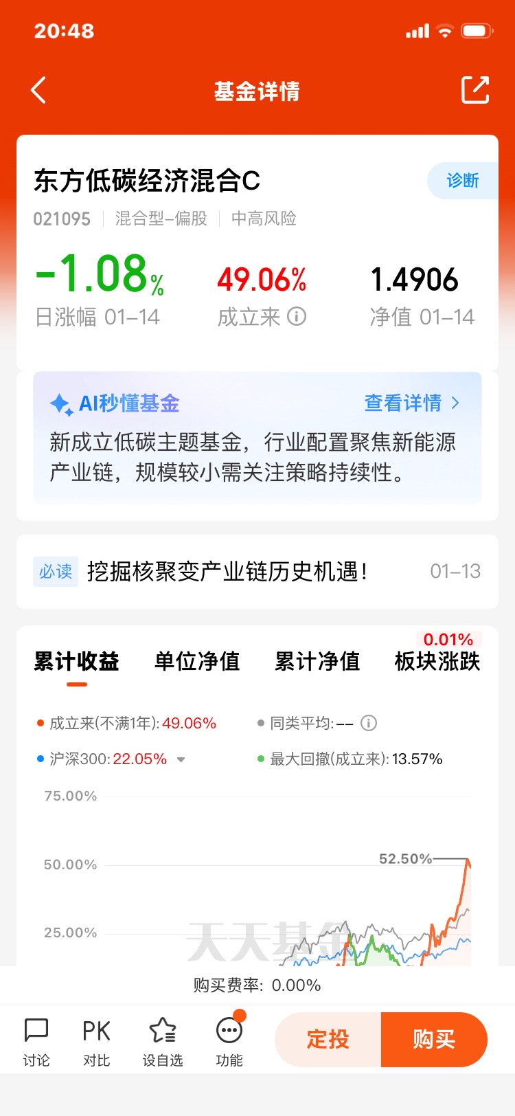 面对这样一个复杂而充满机遇的产业,个人投资者直接筛选个股难度很高,风险也较为集中。借道专业性更强的公募基金,可能是更适宜的方式。东方基金旗下的东方低碳经济混合基金(包括A类021094和C类021095),因其前瞻布局引起了我的注意。它并非一只纯粹的核聚变主题基金,而是一只以“低碳经济”为方向的混合型基金,却能早在2025年3月就敏锐地捕捉并投资核聚变板块,这本身就体现了其投研的前瞻性。那么,它的投资机会主要体现在哪些方面呢?