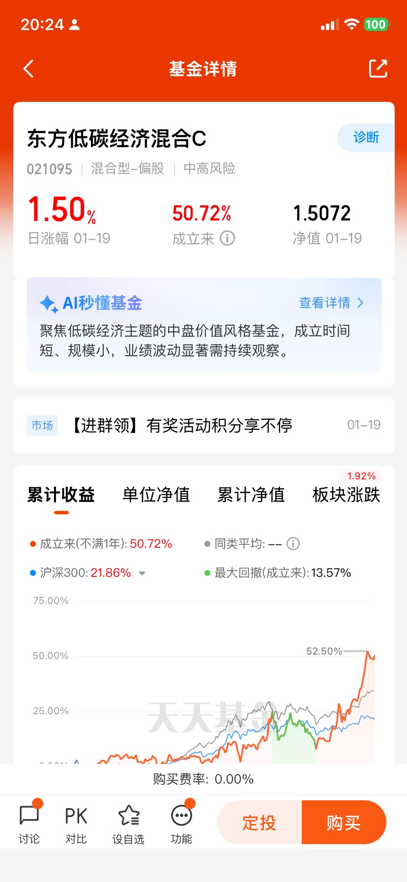 @东方李瑞 经理从业8年以上,在管的$东方低碳经济混合C$ 聚焦核聚变板块投资机会,基金净值今天涨1.5%,表现非常好!近三个月收益回报34.61%,在近4000只同类基金中排名前2%,非常优异!我会持续关注,择机定投$东方低碳经济混合A$ ,并长期持有!