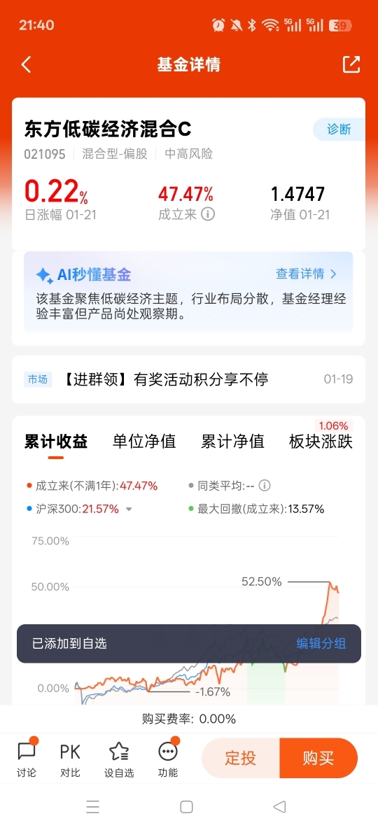 不过我也知道,这种从0到1的赛道个股风险大,幸好东方低碳经济混合C早在2025年3月就提前布局了,覆盖上游材料和中游设备,还把低碳技术、绿色能源等五大双碳领域都纳入了配置,相当于帮我们把赛道的红利打包了。