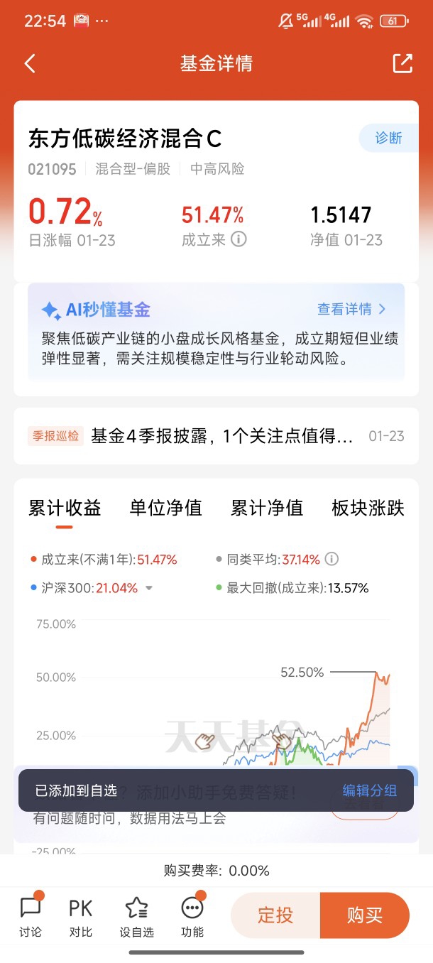 我的2026“躺平”实操也很简单:每月发工资后固定定投一笔,不看短期涨跌,把择时的难题交给专业的人。平时最多每周看一眼净值,绝不因为某天跌了就恐慌赎回,也不因为涨了就盲目加仓。毕竟低碳赛道是长期趋势,2025年这只基金已经涨了31.64%,成立以来更是累计涨了51.47%,这种长期向上的基金,越折腾越容易错过收益。就像淡马锡说的,可持续投资要扛住短期波动,才能拿到长期价值,他们都把低碳相关投资占比提到11%了,我们普通投资者更该有耐心。