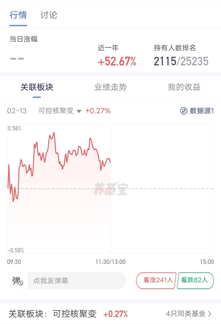 可控核聚变现在小幅上涨 .27,从盘面适时波动来看,今天走的是震荡拉升的节奏,但是从整体能源板块上来看,现在可控核聚变还是比较具有韧性的,而且板块内部出现明显的变化,我认为今天是春节前最后一个交易日,板块内有资金流出,这属于正常现象,可能午后盘会出现回落,但对我来说我是持仓过节的。虽然短期内行情会比较磨人,但是这是国家战略支持的方向,趋势整体并没有走坏,我就继续拿稳就好。