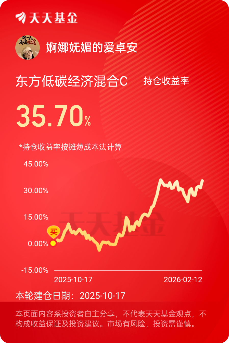 太爽了!核聚变最后一天直接拉满,资金认可度直接拉爆,核心标的集体起飞,把“终极能源”的热度焊死在年尾!今天这行情,就是给坚守者的年终大红包,也给明年开了个王炸好头!不管是拿票还是持基,这一年的等待都值了,开开心心过年,年后咱们接着冲核聚变的新机会!$东方低碳经济混合C$ #晒收益#