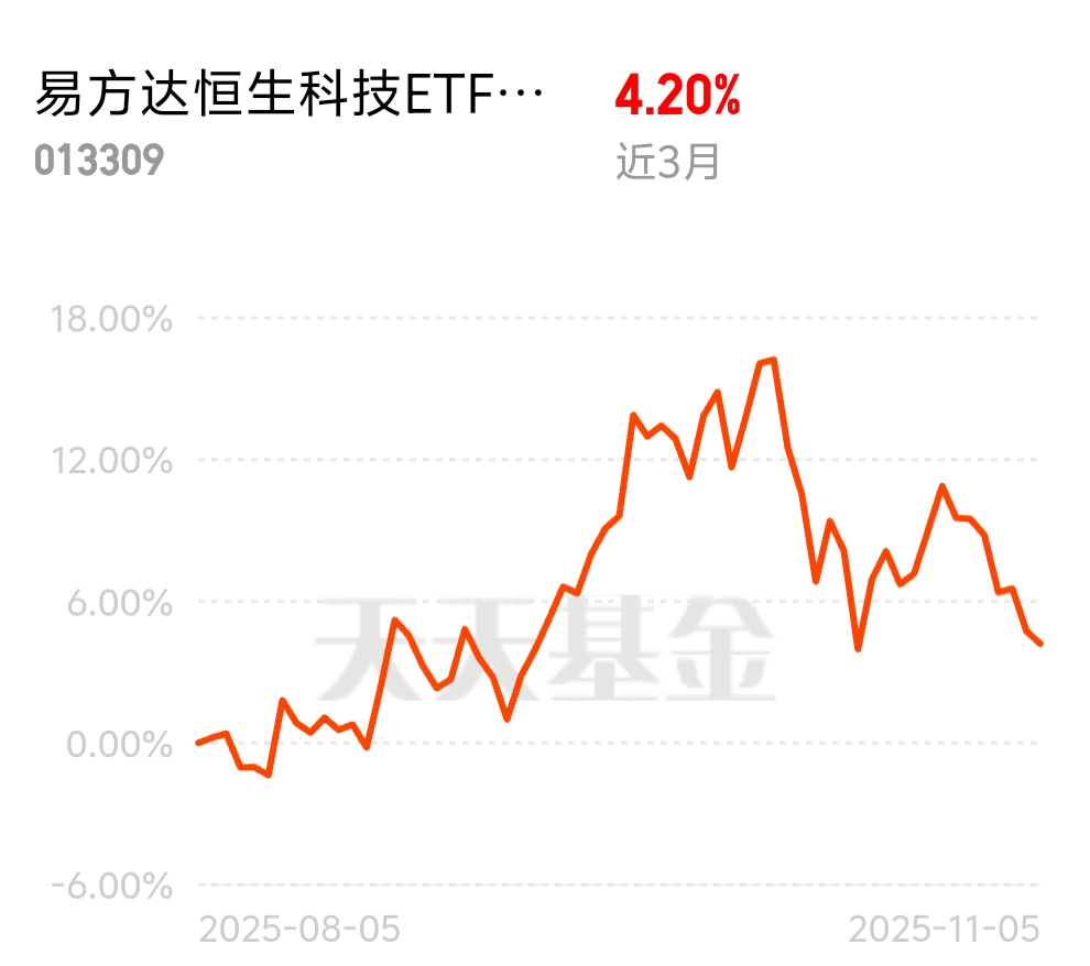 市场波动期间,港股科技板块估值挤去不少水分,现在的价格越来越有吸引力。易方达恒生科技ETF联接(QDII)C近3个月涨了4.20%,在估值有优势的当下布局,既能分散投资风险,又能拥抱科技行业的长期机会,挺适合纳入资产组合。
