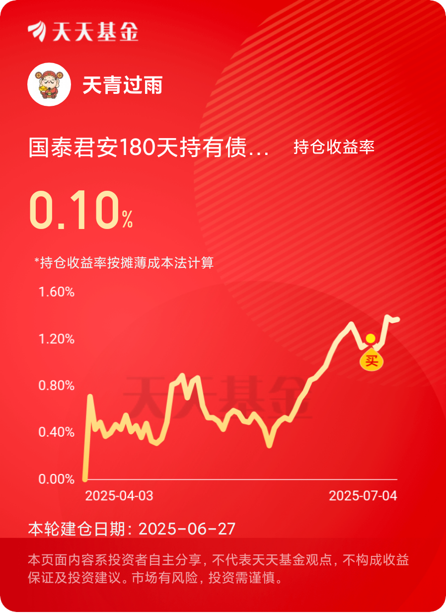 看债券的走势就是长期稳稳当当的向上中,有闲钱就继续配置$国泰君安180天持有债券发起C$ #晒收益#