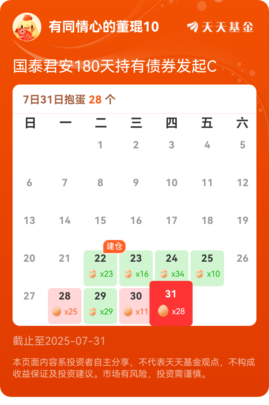 月定投继续加仓,债基比的就是耐心了$国泰君安180天持有债券发起C$