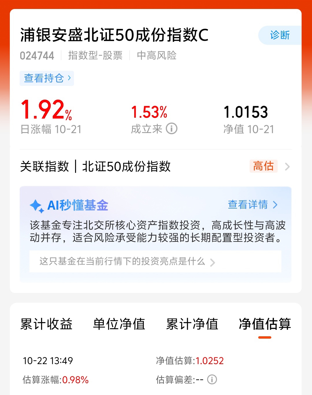北证跑出独立性行情!创业板、科创指数盘中还在调整,北证风景独好。$浦银安盛北证50成份指数A$$浦银安盛北证50成份指数C$ 跟踪紧密,成立以来跑赢指数,费率低不限额,7天免赎回费。
