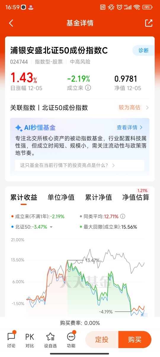 北证50科技赛道全覆盖,浦银安盛这款不限额!专精特新占比超50%,C份额七免费率综合低$浦银安盛北证50成份指数C$ $浦银安盛北证50成份指数A$