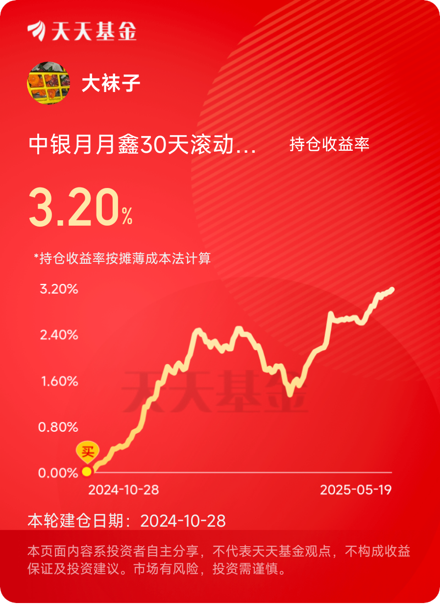 $中银月月鑫30天滚动持有债券C$ #晒收益#