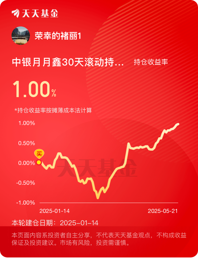 不得不说还是稳健收益产品好,中银月月鑫轻轻松松连涨五天,这样每天稳稳地收蛋超幸福!#晒收益#
