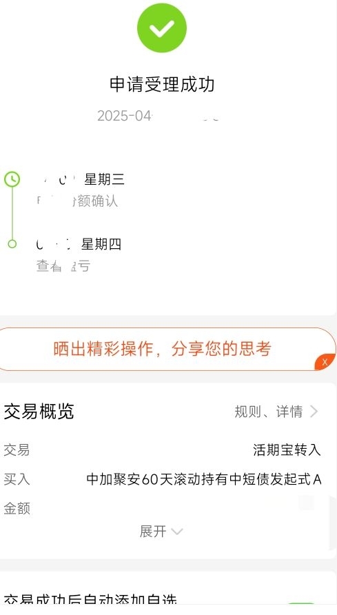 投资不能急于求成,最怕的就是追涨杀跌,还是多买点稳的更香。上车$中加聚安60天滚