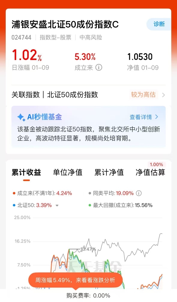 浦银北证50成立以来超额指数,更值得上车,抓紧操作走起$浦银安盛北证50成份指数C$
