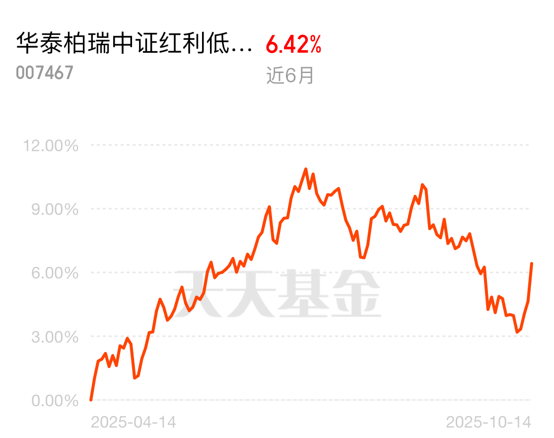 对比那些大起大落的主题基金,$华泰柏瑞中证红利低波ETF联接C$连续5天稳步上涨