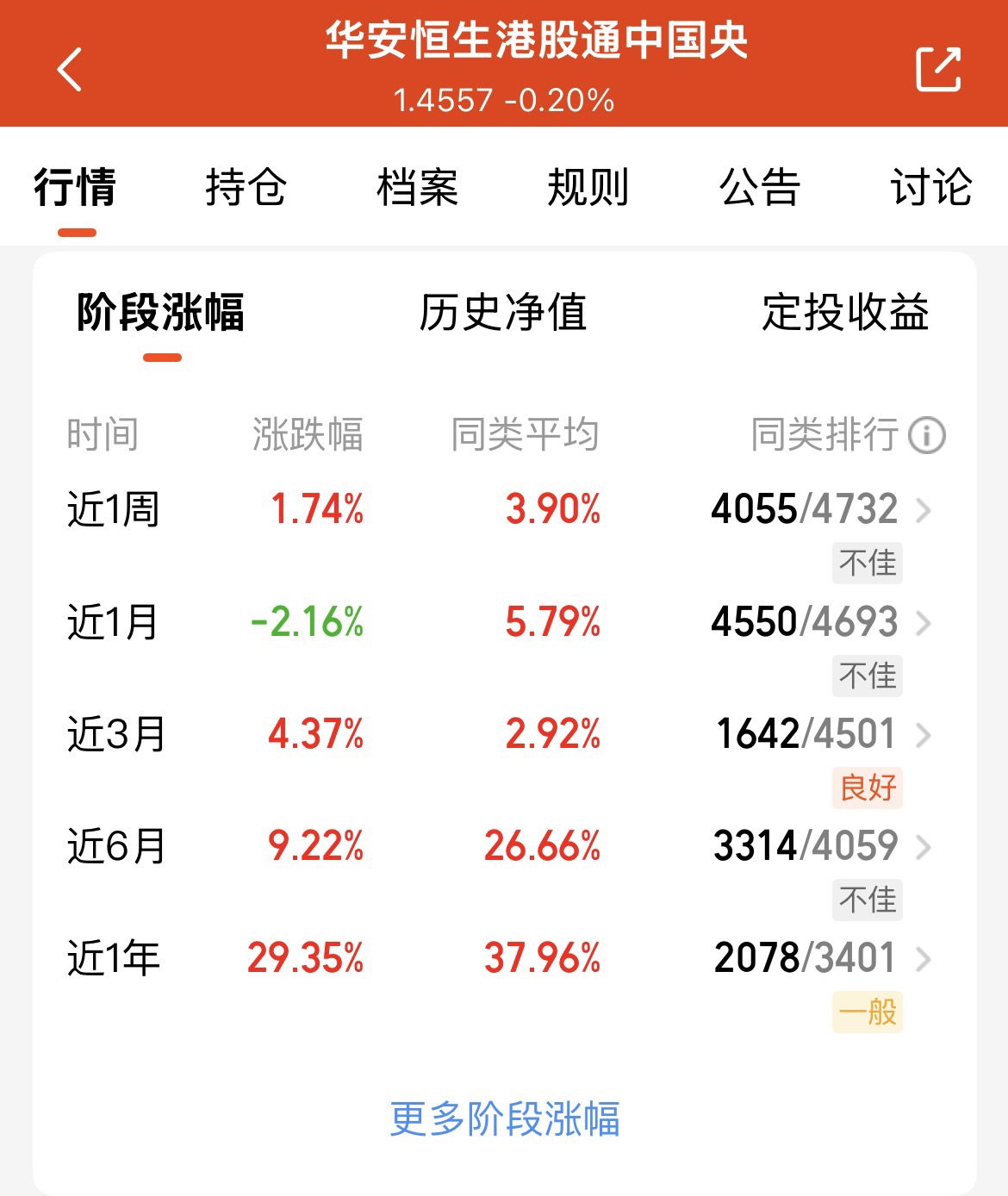 高股息爱好者看过来,$华安恒生港股通中国央企红利ETF发起式联接A$ 0 折申购,近一年涨 29.35%,稳稳拿分红赚收益