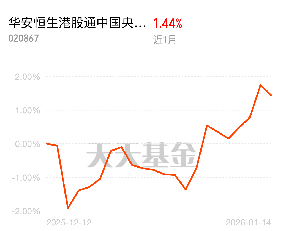 $华安恒生港股通中国央企红利ETF发起式联接C$ 近月涨 1.44%,港股央企高分红,波动更可控,稳稳拿收益