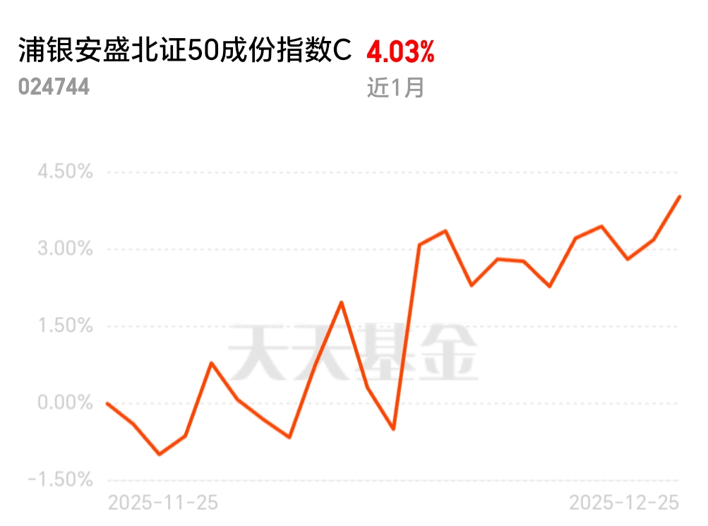 北证50,是北交所投资唯一优选!$浦银安盛北证50成份指数C$ 不限额,跟踪误差低,抓紧额度宽松期抢先布局。