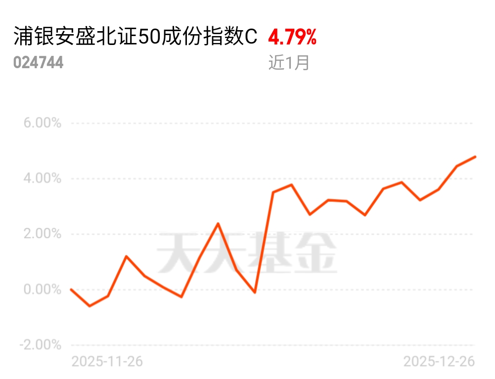 年末抓补涨认准30cm北证!浦银安盛北证50额度充足,科技赛道全覆盖,成立来跑赢指数,7天免赎回费,波段操作超方便!$浦银安盛北证50成份指数C$