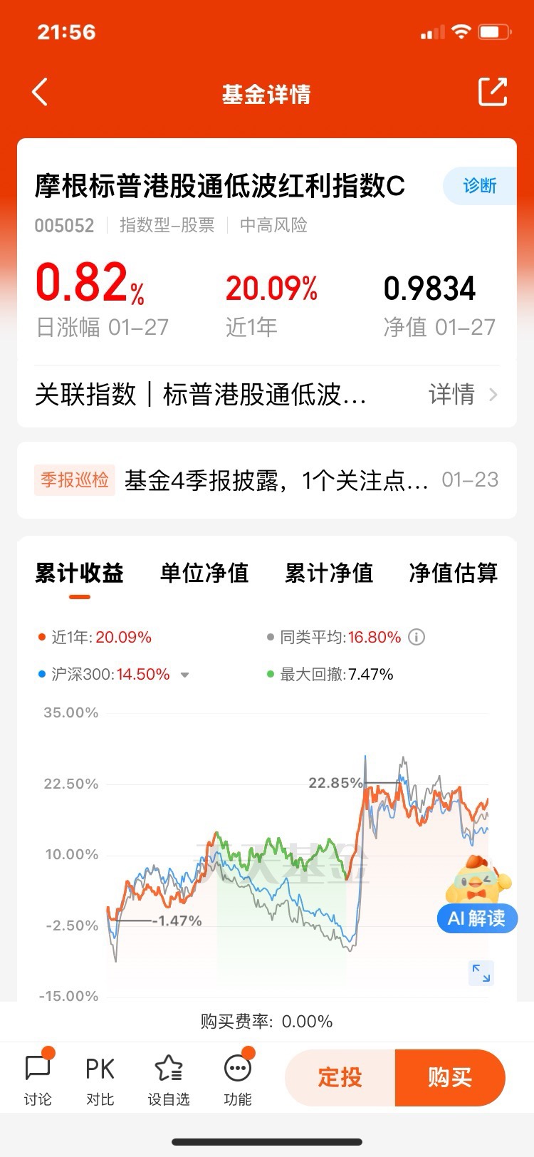 $摩根标普港股通低波红利指数A$$摩根标普港股通低波红利指数C$都是不错的选择。